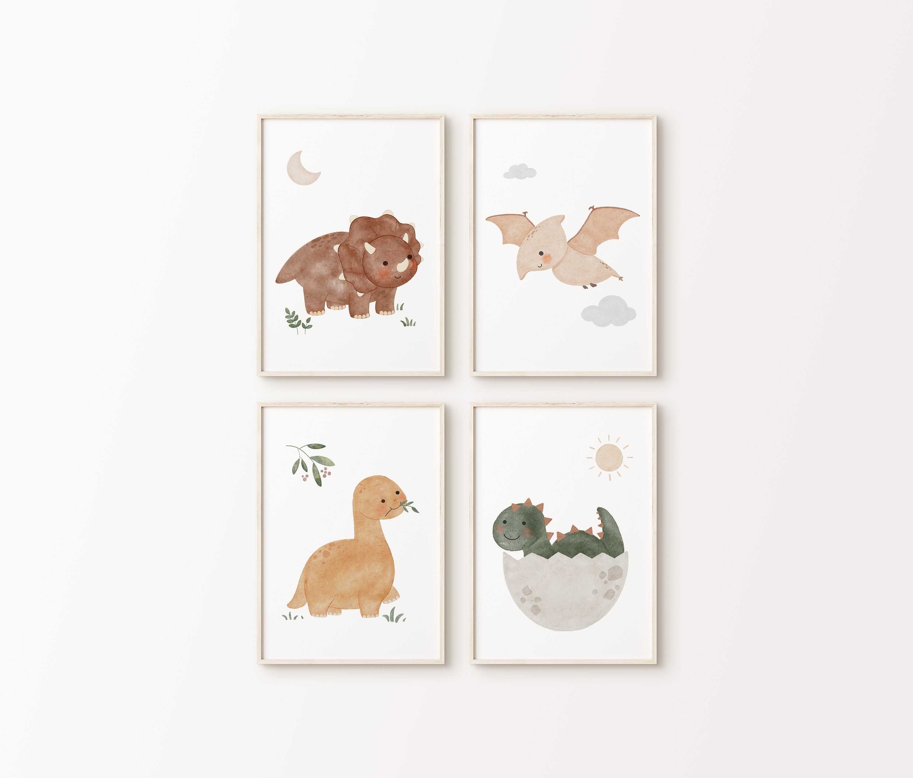 Dinosaur Print Set Of 4 Gender Neutral Nursery Decor Etsy De