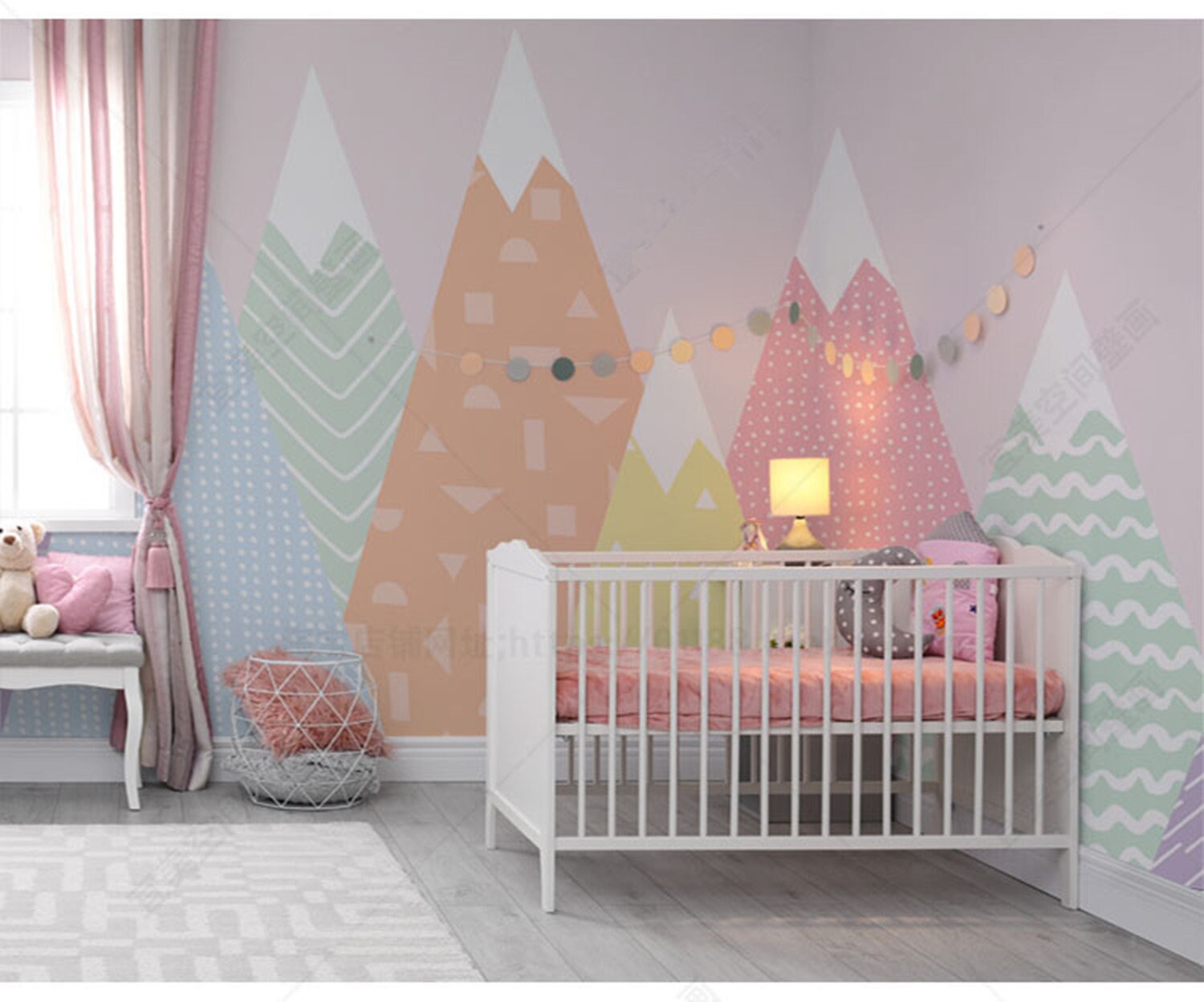 Hand Bemalt Geometrische Kindergarten Kinder Wallpaper Rosa Etsy De